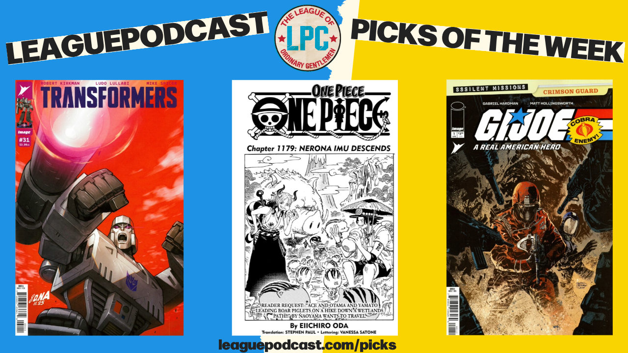 A little something for everyone from the League of ELDS this week! Transformers for Durs, G.I. Joe for Clay N. Ferno and keep John employed as a letterer with One Piece!