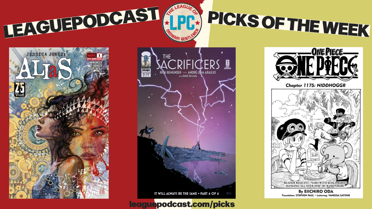 One Piece, Shonen Jump, Viz Media, The Sacrificers, Rick Remender, Andre Lima Araujo, Image Comics, Jessica Jones, Alias, Luke Cage, Sam Humphries, Geraldo Borges, Typhoid Mary, Marvel Comics, Red Band, NCBD, New Comic Book Day, leaguepodcast